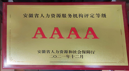 中心各項制度健全,業務流程規范,服務臺賬資料齊全,擁有長期從事人力資源行業、經驗豐富的專業人才,中心嚴格執行年檢及年度公示制度,積極納稅,并積極參與公益活動和行業活動,得到社會上較高評價。分別于2012年、2013年、2014-2015年度、2016-2017年度、2018-2019年度獲得安徽省人力資源服務機構一次“A”級,四次“AA”級信用等級人力資源服務機構。 2021年12月公司又獲得安徽省人力資源社保保障局授予的人力資源服務機構“AAAA”級稱號。